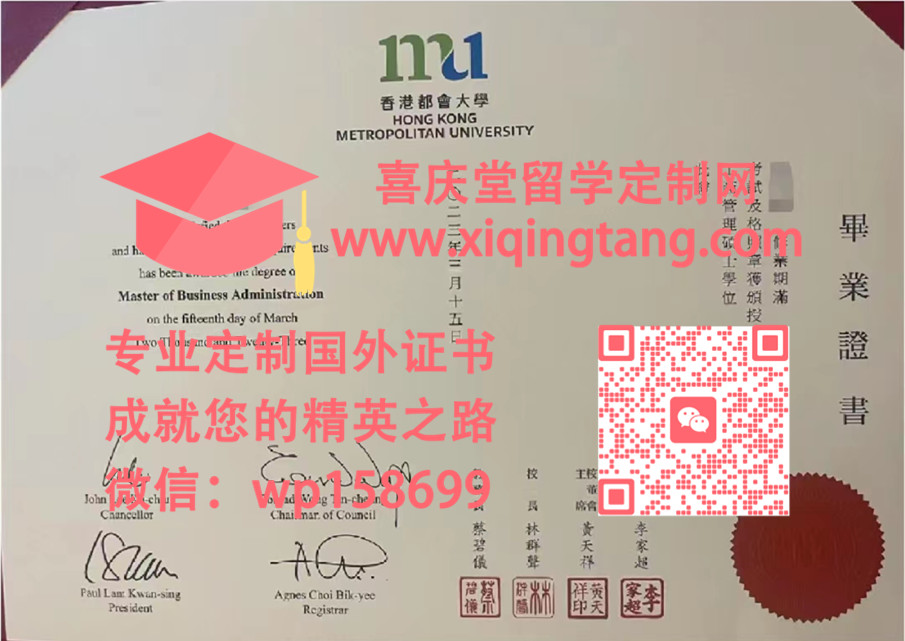 香港都会大学毕业证样本 Hong Kong Metropolitan University HKMU diploma